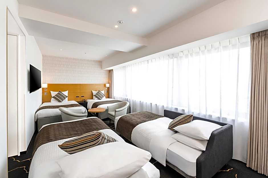 This room is fitted with large windows looking out to the city of Sapporo. It features a separate bathroom, a toilet and a washing basin. Room is equipped with a fridge, an electric kettle and a flat-screen TV with satellite channels. An air purifier is also included.